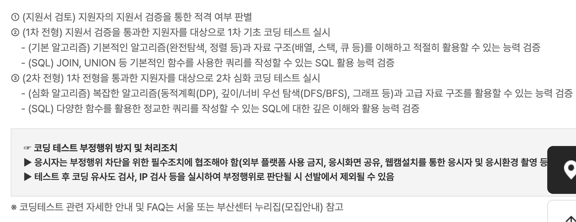 코딩 테스트 관련 학습 가이드입니다. 위의 사진에 나온 부분은 학습 가이드가 아닌 모집 공고에 있습니다!